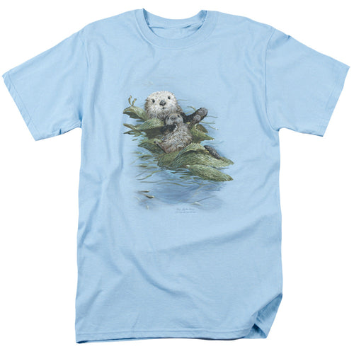 Wildlife Kelp Cradle Otters Mens T Shirt Light Blue