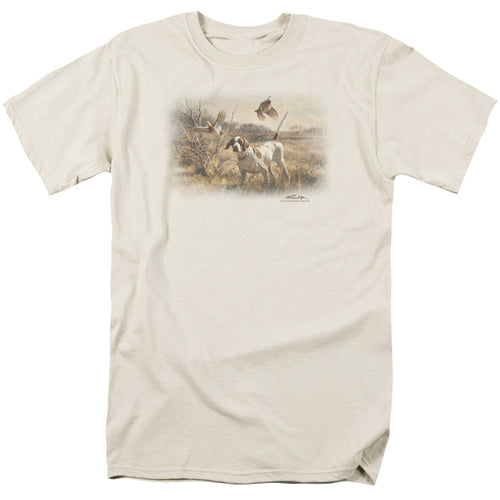 Wildlife Pointer & Bobwhite Quail Mens T Shirt Cream