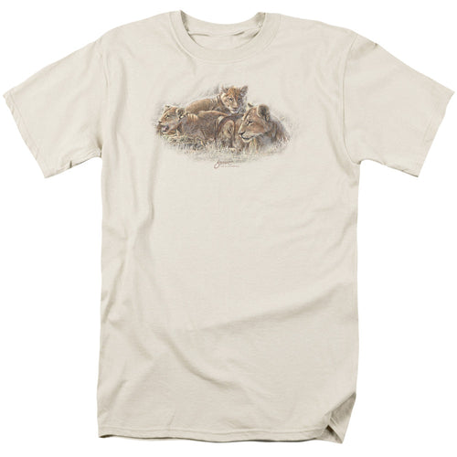 Wildlife Lion Cubs Mens T Shirt Cream