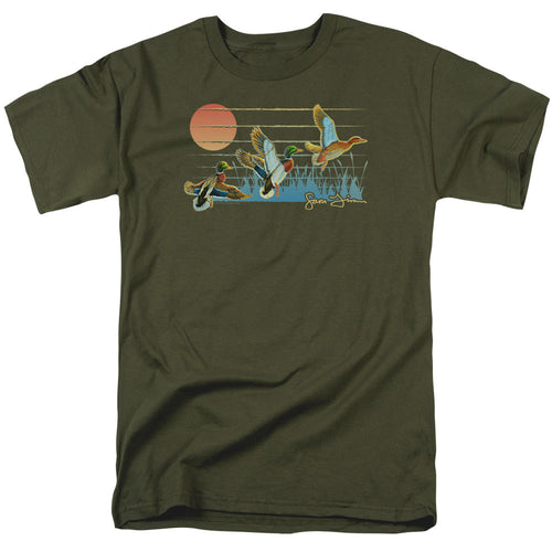 Wild Wings Three Ducks Mens T Shirt Military Green
