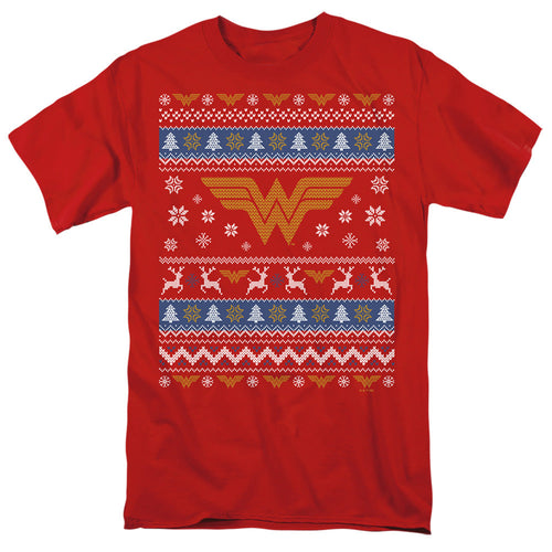 Wonder Woman Ugly Christmas Logo Mens T Shirt Red