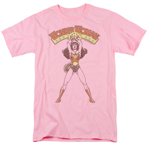 Wonder Woman Distressed Powerful Stance Mens T Shirt Pink