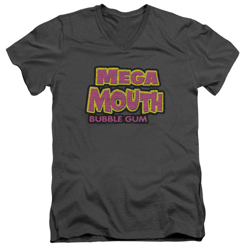 Dubble Bubble Mega Mouth Mens Slim Fit V Neck T Shirt Charcoal