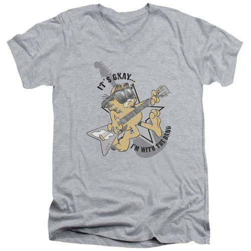 Garfield Im With the Band Mens Slim Fit V-Neck T Shirt Athletic Heather