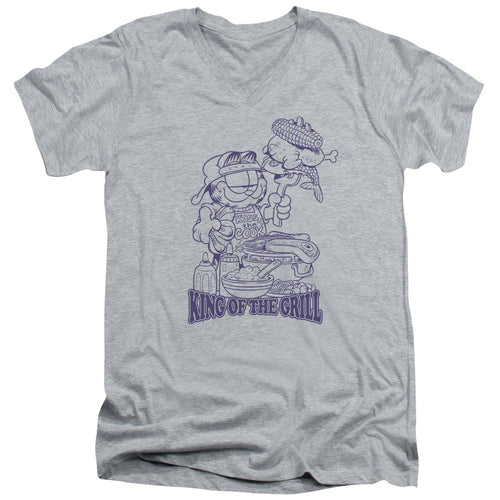 Garfield King of the Grill Mens Slim Fit V-Neck T Shirt Athletic Heather