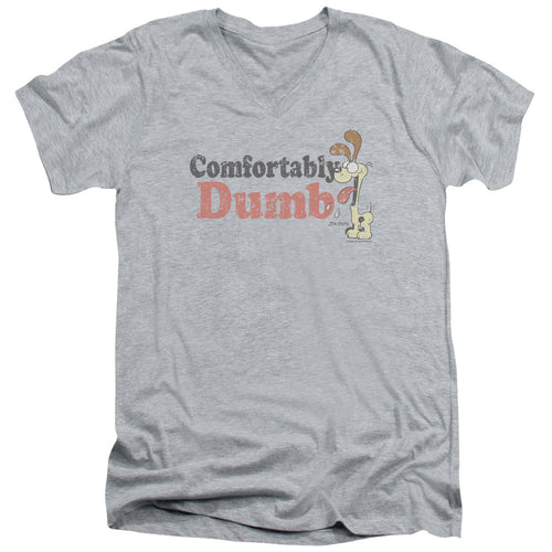 Garfield Comfortably Dumb Mens Slim Fit V-Neck T Shirt Athletic Heather