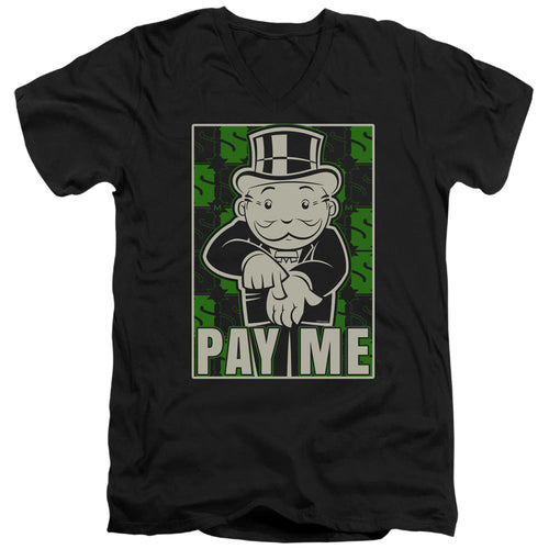 Monopoly Pay Me Mens Slim Fit V-Neck T Shirt Black