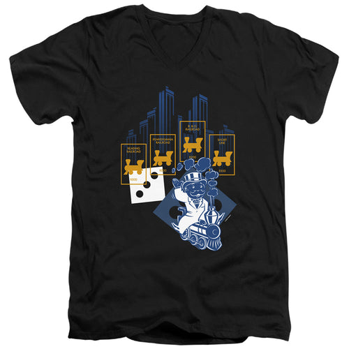 Monopoly the True Railroad Tycoon No Logo Mens Slim Fit V-Neck T Shirt Black