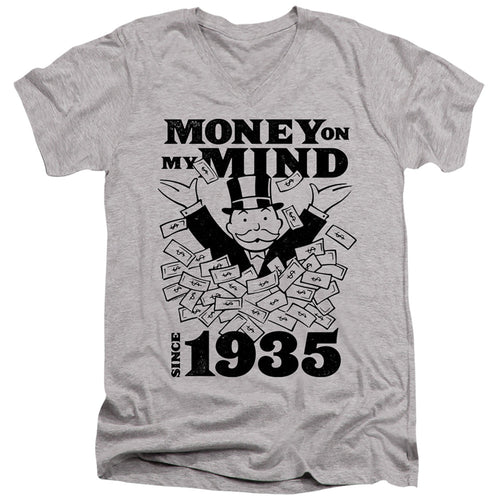 Monopoly Money Mind Since 35 Mens Slim Fit V-Neck T Shirt Athletic Heather