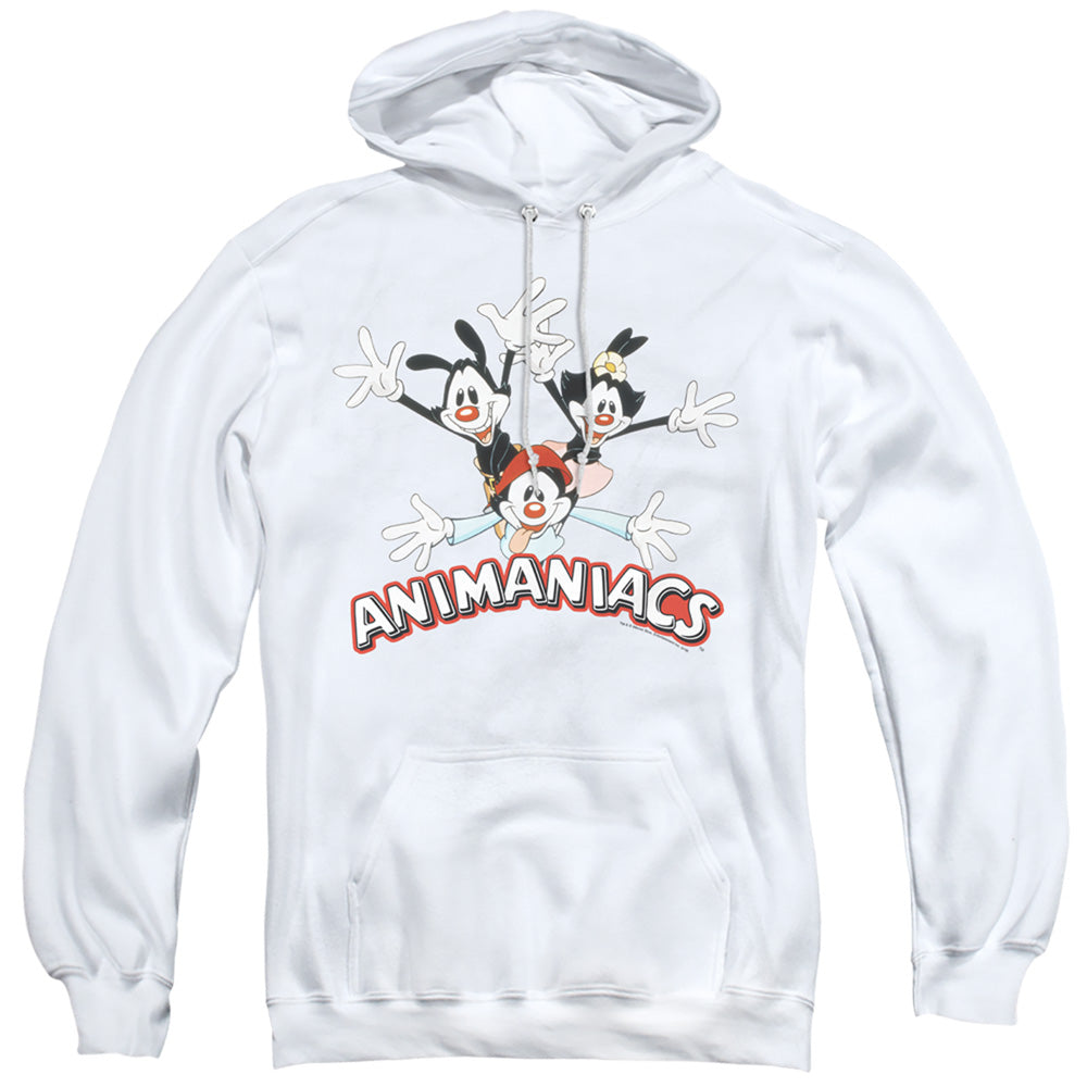 Unleash your animated spirit with our exclusive Animaniacs Officially Licensed Apparel, a vibrant homage to the iconic and zany trio that defined a generation of laughter. Crafted with meticulous attention to detail, each garment serves as a wearable masterpiece, capturing the essence of Yakko, Wakko, and Dot. Embrace nostalgia with our high-quality fabrics that promise not only enduring comfort but also a splash of whimsical style. Whether you're a longtime fan or a new aficionado, this apparel collection transcends ordinary clothing, inviting you to a realm of creativity and chaos. Infuse your wardrobe with character, charm, and charisma; let the world know you haven't lost your sense of animated wonder. Discover the magic of the Warner siblings and express your inner cartoon connoisseur. Purchase today and transform your everyday look into an exciting exhibit of fandom and flair.Animaniacs Animaniacs Trio Mens Hoodie White