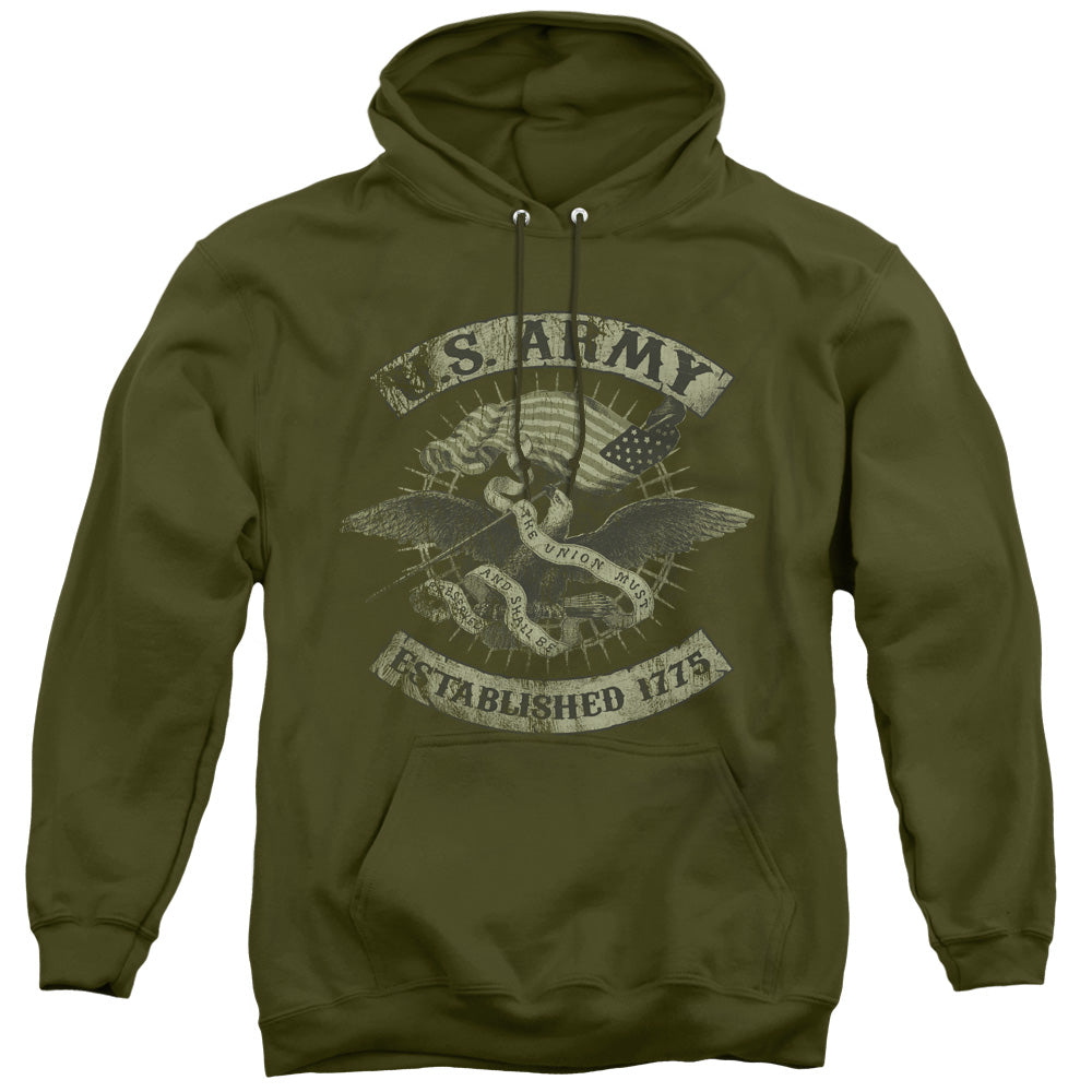 Embrace the honor, pride, and tradition of military excellence with our Army Officially Licensed Apparel. Each piece is crafted with precision and authenticity, capturing the valor and dedication that defines our brave service members. Immerse yourself in comfort and durability with fabrics designed to withstand the rigors of any expedition, whether you're navigating the urban landscape or embarking on an outdoor adventure. Proudly display your allegiance and commitment with our meticulously detailed designs, which include iconic insignias and emblems. Make a bold statement and fuel your patriotic spirit with attire that not only resonates with heritage but also stands out in quality and style. Join the ranks of discerning patriots who trust in genuine Army merchandise. Elevate your wardrobe today with apparel that honors those who serve with courage and integrity.Army Union Eagle Mens Hoodie Military Green