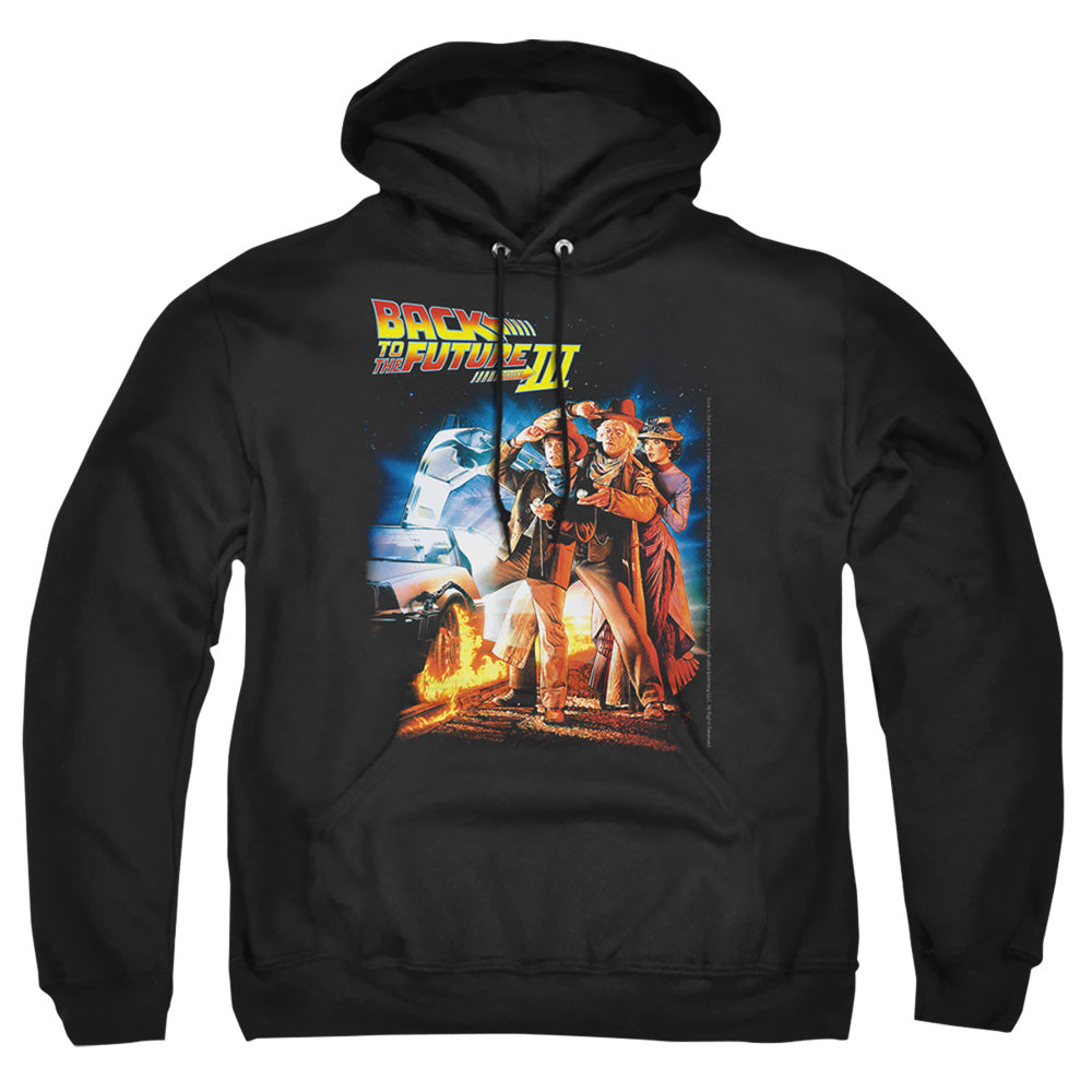 Step into the time-honored world of cinematic nostalgia with our Back To The Future III Officially Licensed Apparel. Crafted for fans who live to relive the adventure, this exclusive collection is more than just clothing; it's a bridge to the past and a style statement of the future. Each piece is meticulously designed to echo the unforgettable spirit of Marty McFly's whimsical escapades, making it an iconic addition to your wardrobe. Embrace the fusion of comfort and style with premium materials that promise unparalleled quality, and vibrant designs that immortalize classic moments from the epic time-traveling tale. Whether you're a seasoned fan or a newcomer drawn by the legendary allure, this apparel is your ticket to join the timeless journey. Buy now and wear your epic saga through time, proudly and stylishly.Back To The Future Iii Poster Mens Hoodie Black