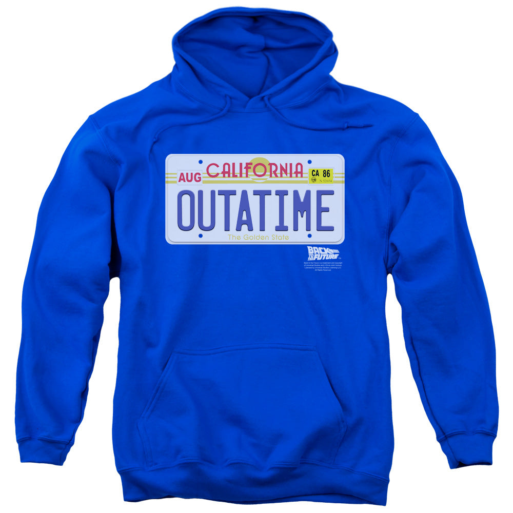Back To The Future Outatime Plate Mens Hoodie Royal Blue throwback retro mens classic vintage style pullover hoodie