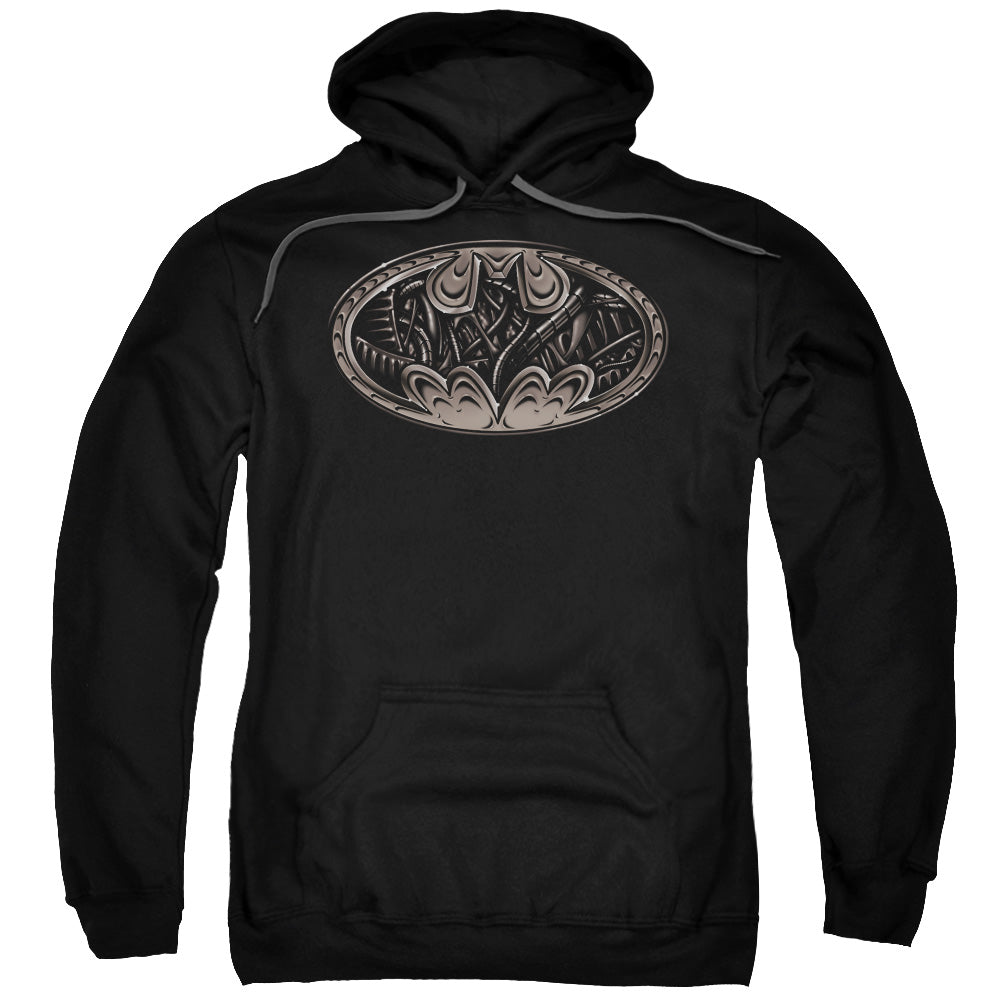 Batman Bio Mech Bat Shield Mens Hoodie Black throwback retro movie mens pullover hoodie