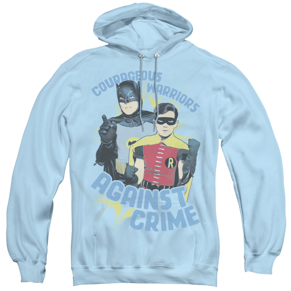 Batman Classic Tv Courageous Warriors Mens Hoodie Light Blue throwback retro movie mens pullover hoodie