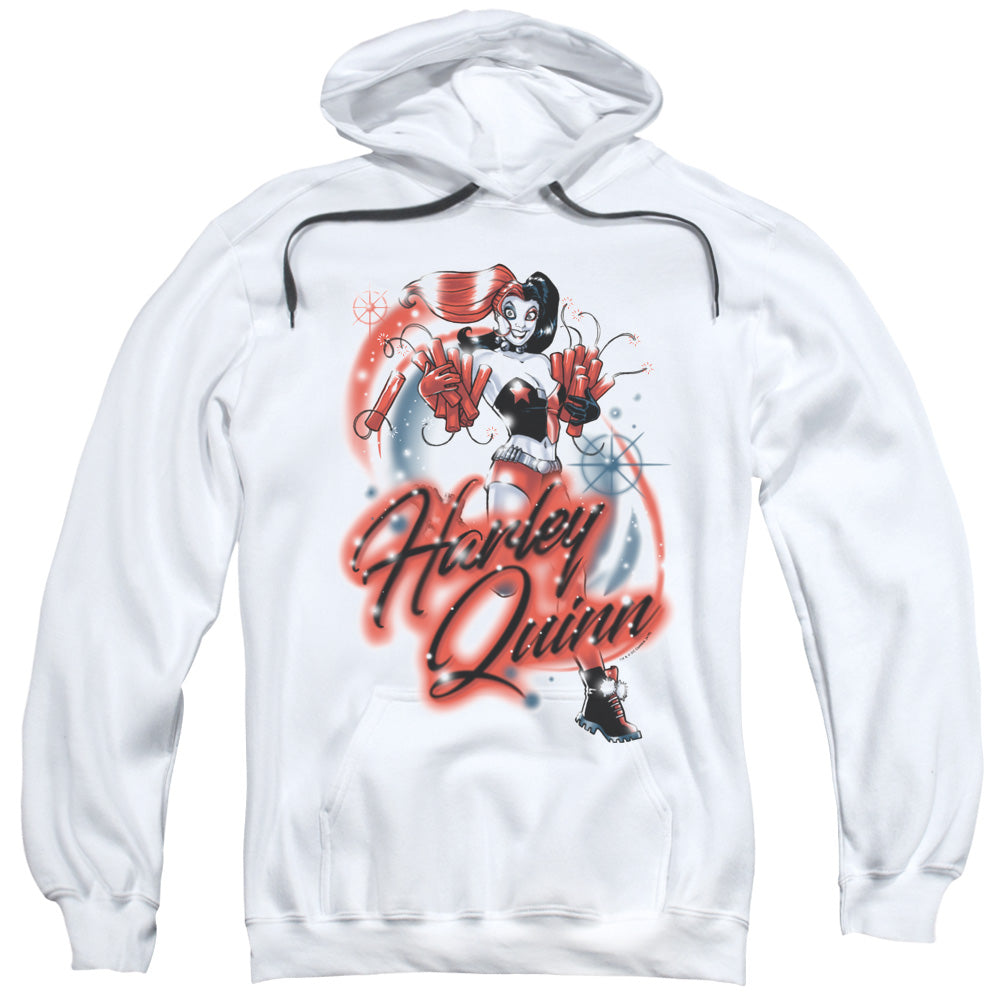 Batman Harley Airbrush Mens Hoodie White throwback retro movie mens pullover hoodie