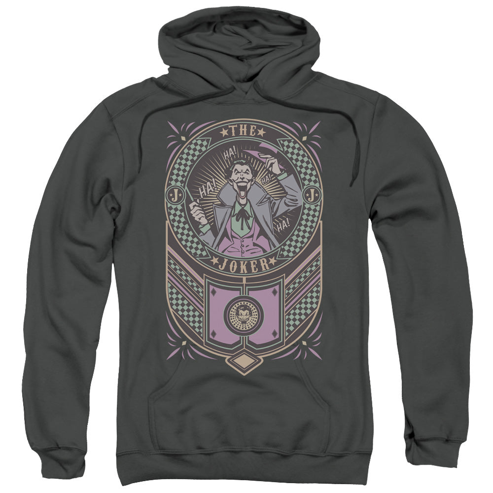 Batman Joker Checkered Sign Mens Hoodie Charcoal throwback retro movie mens pullover hoodie