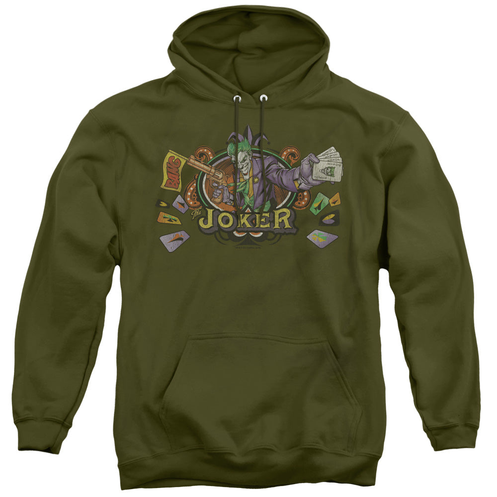 Unleash your inner hero with our exclusive Batman Officially Licensed Apparel - a collection that embodies the timeless allure and empowering mystique of Gotham's legendary Dark Knight. Crafted with impeccable precision and superior craftsmanship, each piece in this collection promises to envelop you in unparalleled comfort while invoking the iconic strength and formidable style of Batman himself. Tailored from premium materials designed to endure, these apparel pieces are not just clothing but a bold statement of identity and dedication to justice. Whether you're navigating the city's bustling streets or plotting your next adventure, let the legacy of the Caped Crusader inspire every stride. Elevate your wardrobe and transcend the ordinary Ÿ?? because with Batman, it's not just fashion; it's a mission!Batman King Of Crazy Mens Hoodie Military Green