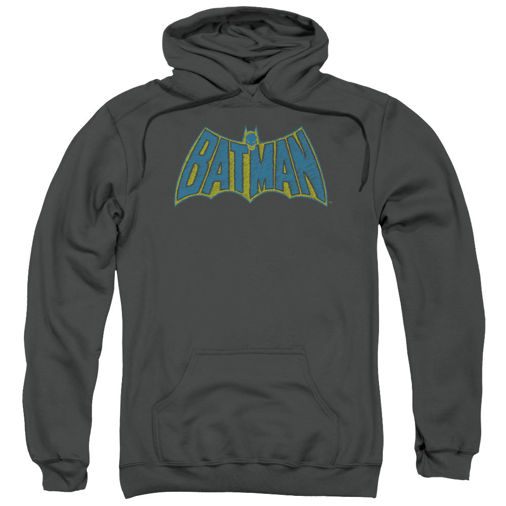 Batman Sketch Logo Mens Hoodie Charcoal throwback retro movie mens pullover hoodie