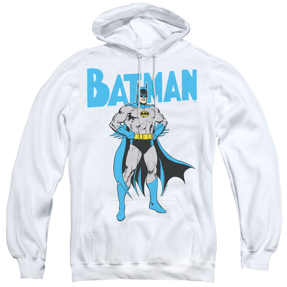 Batman Stance Mens Hoodie White throwback retro movie mens pullover hoodie