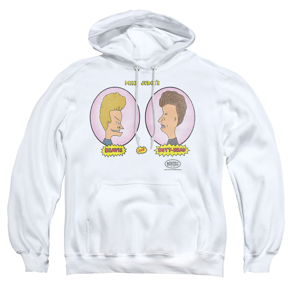 Beavis And Butthead Heads In Ovals Mens Hoodie White throwback retro movie mens pullover hoodie