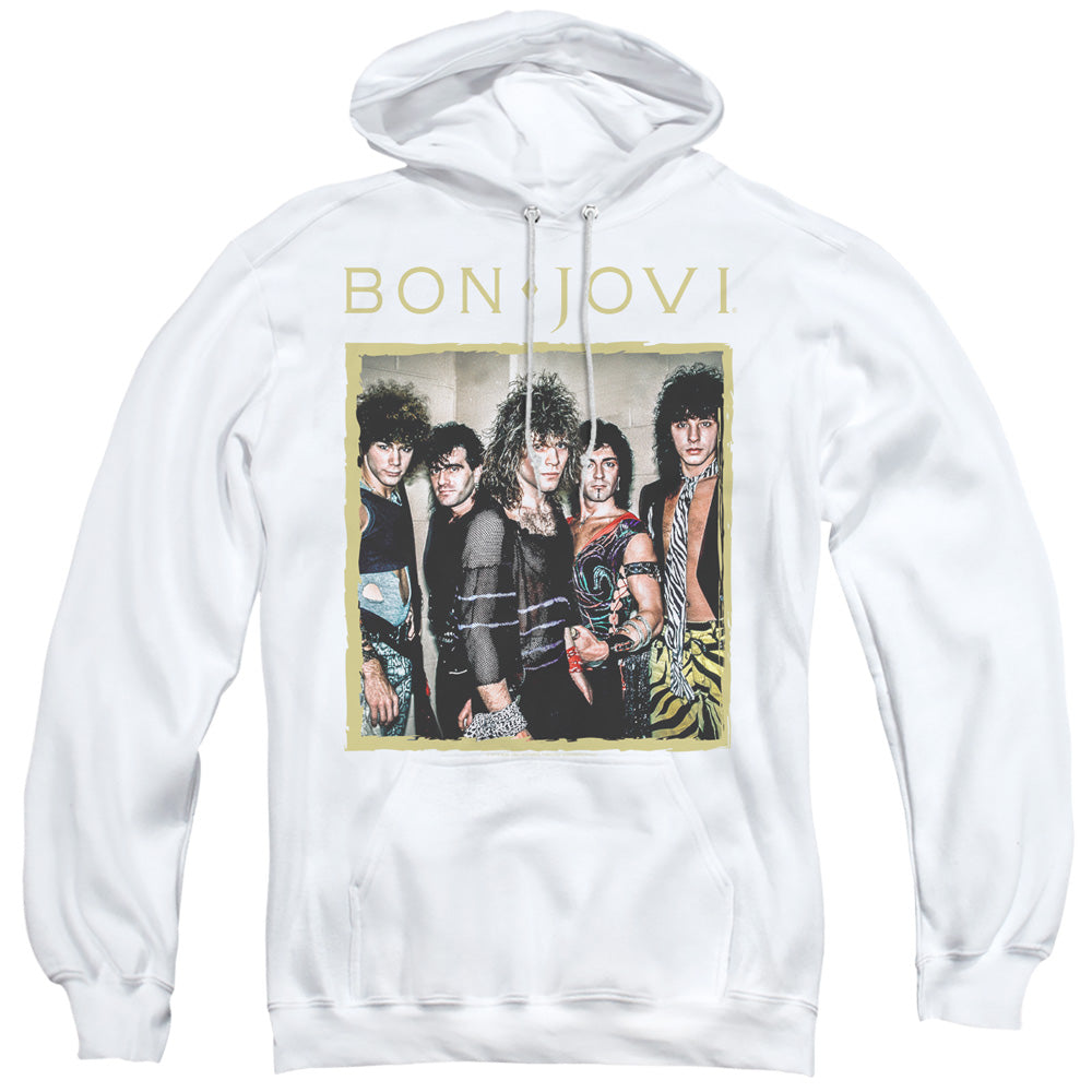 Bon Jovi Framed Mens Hoodie White throwback retro movie mens pullover hoodie