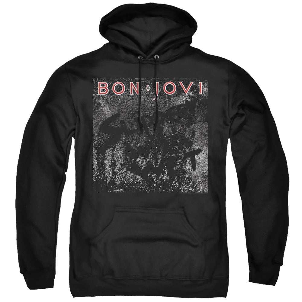Elevate your wardrobe with our Bon Jovi Officially Licensed Apparel—where rock 'n' roll heritage meets unmatched style. Crafted for the ultimate fan, each piece in our exclusive collection embodies the spirit and energy of one of music's greatest icons. Immerse yourself in premium fabrics that echo the band's legendary status, delivering both comfort and durability. From vintage-inspired tees to modern classics, our designs are infused with authentic artistry, guaranteed to resonate with the soulful anthems that define generations. Stand out from the crowd, celebrate the legacy, and wear your love for Bon Jovi on your sleeve—literally. Invest in authenticity and embrace a fashion statement that doesn't just accessorize, but amplifies your inner rocker. Don’t miss your chance to own a piece of musical history, because Bon Jovi isn’t just a band—it’s a lifestyle.Bon Jovi Slippery Cover Mens Hoodie Black