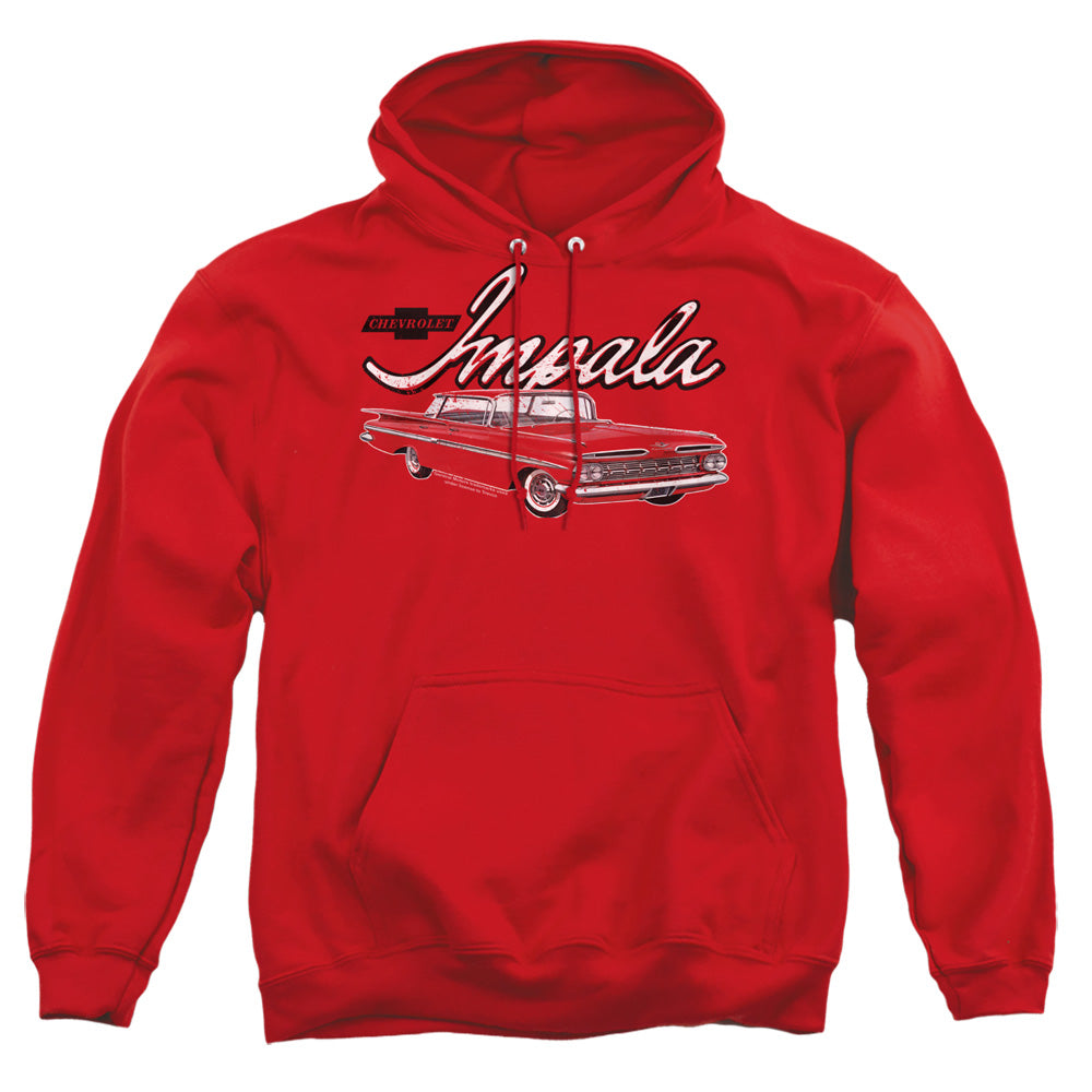 Rev up your wardrobe with our Chevrolet Officially Licensed ApparelŸ??where iconic automotive heritage meets unmatched style. Each piece in this collection is a tribute to the timeless legacy of Chevrolet, crafted from premium materials that promise comfort and durability. Whether you're cruising down the highway or heading to a casual meet-up, our apparel transforms ordinary moments into extraordinary experiences. With vibrant designs and authentic Chevrolet branding, each item tells a story of innovation and excellence. Elevate your style and celebrate your passion for the open road with attire that's as legendary as the cars themselves. Don't just wear fashion; wear a legacy. Own your piece of history today.Chevrolet Classic Impala Mens Hoodie Red