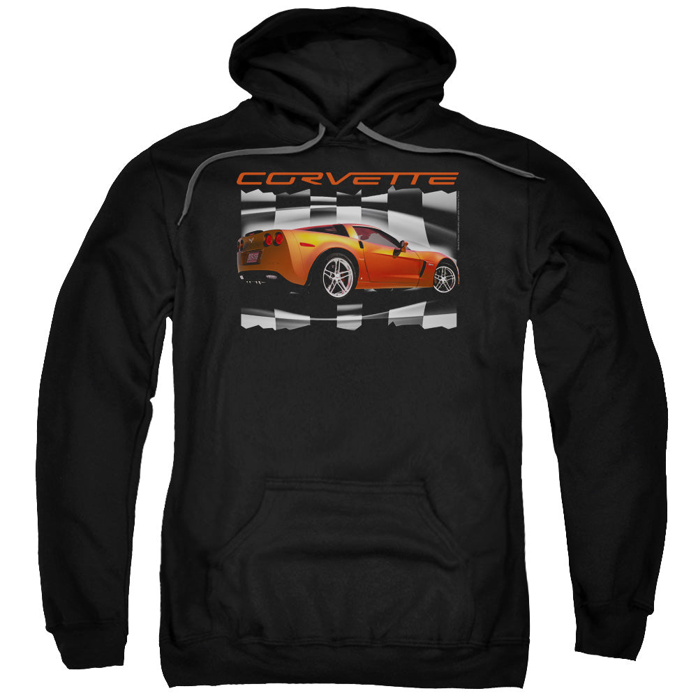 Rev up your wardrobe with our Chevrolet Officially Licensed ApparelŸ??where iconic automotive heritage meets unmatched style. Each piece in this collection is a tribute to the timeless legacy of Chevrolet, crafted from premium materials that promise comfort and durability. Whether you're cruising down the highway or heading to a casual meet-up, our apparel transforms ordinary moments into extraordinary experiences. With vibrant designs and authentic Chevrolet branding, each item tells a story of innovation and excellence. Elevate your style and celebrate your passion for the open road with attire that's as legendary as the cars themselves. Don't just wear fashion; wear a legacy. Own your piece of history today.Chevrolet Orange Z06 Vette Mens Hoodie Black