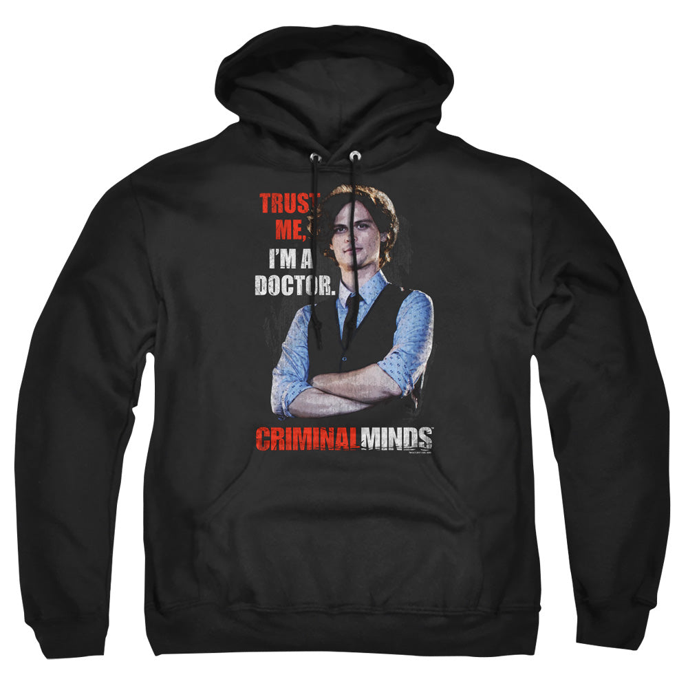 Immerse yourself in the thrilling world of Criminal Minds with our Officially Licensed Apparel Collection. This exclusive line of clothing is crafted for the true fan, combining style with the gripping allure of your favorite crime-solving drama. Each piece in our collection is designed with meticulous attention to detail, allowing you to showcase your passion for the show with sophistication and flair. Feel the intensity of the Behavioral Analysis Unit as you don the iconic insignia and artwork that pay homage to the seriesŸ?? most unforgettable moments. Our apparel is not just a statement; itŸ??s an experience. Made with premium materials, each garment promises unparalleled comfort and longevity, ensuring that your connection with Criminal Minds remains timeless. Stand out from the crowd and let your attire speak to your love for mystery, intellect, and intrigue. Elevate your wardrobe with Criminal Minds Officially Licensed ApparelŸ??a must-have for any dedicated fan.Criminal Minds Trust Me Mens Hoodie Black