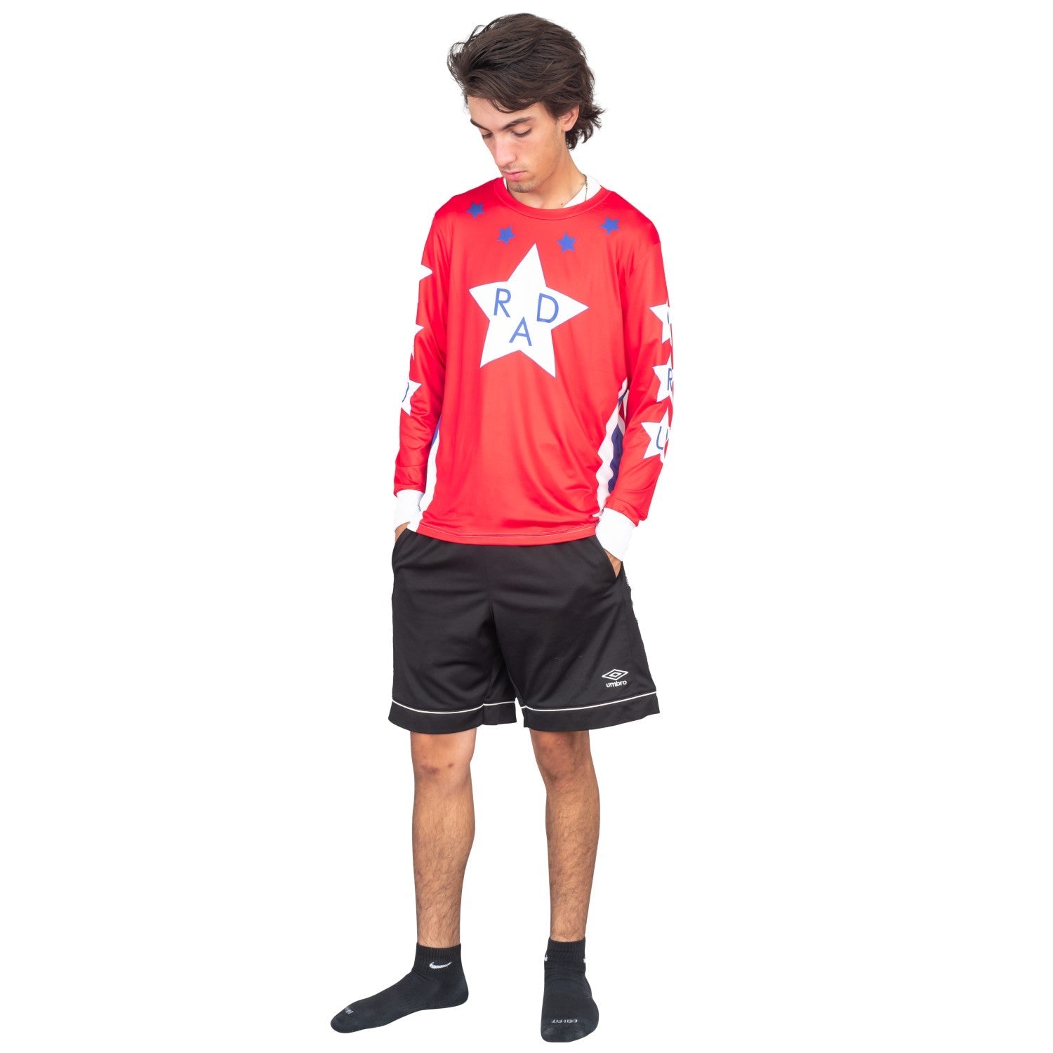 - Includes an adult unisex long sleeve red jersey. Does not include anything else.