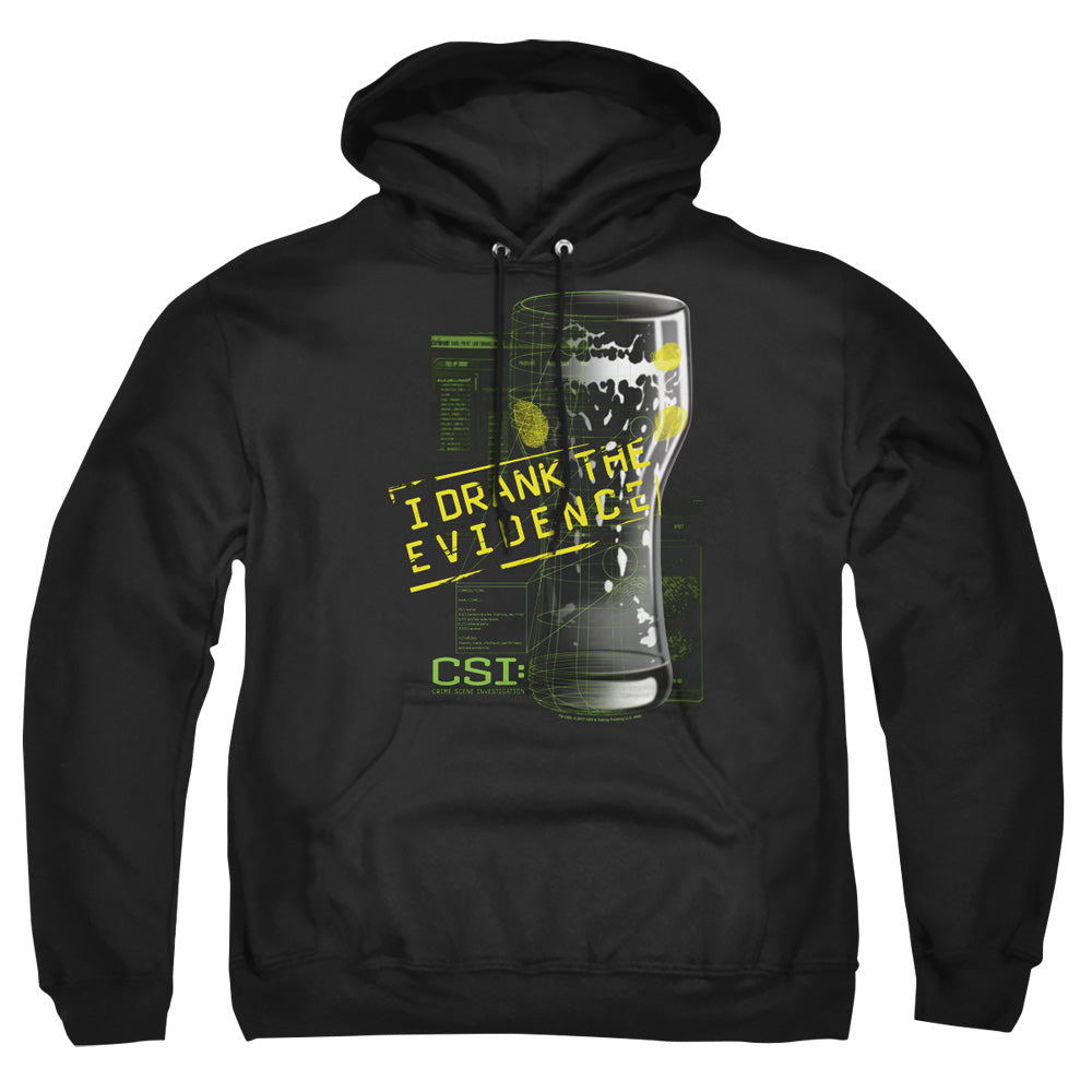 Dive into the allure of Miami with our CSI Miami Officially Licensed Apparel. Crafted for the ultimate fan, each piece from our exclusive collection is more than just clothing; it's a piece of television history. Revel in the soft, breathable fabric that lovingly embraces your skin, while the meticulously detailed designs transport you straight to the sun-drenched beaches and thrilling crime scenes only Miami can offer. With vibrant colors that never fade and fits that flatter every silhouette, you'll turn heads while representing your favorite crime-solving team. Whether you're solving your own mysteries or just lounging by the pool, make a statement with apparel that stands out as much as the iconic show itself. Don't miss your chance to own a tangible connection to CSI Miami's electrifying legacy. Wear the adventure. Wear the legend.Csi I Drank The Evidence Mens Hoodie Black