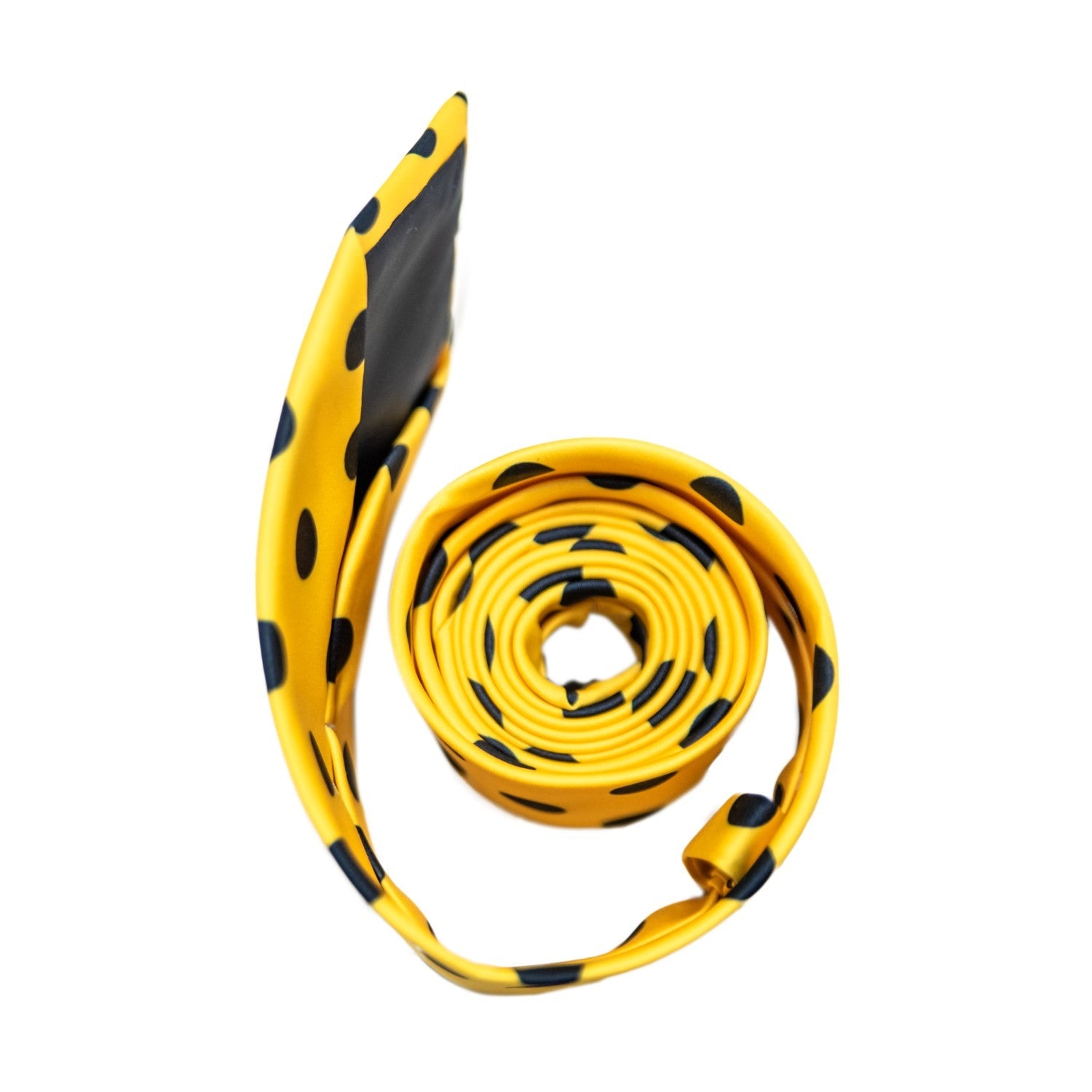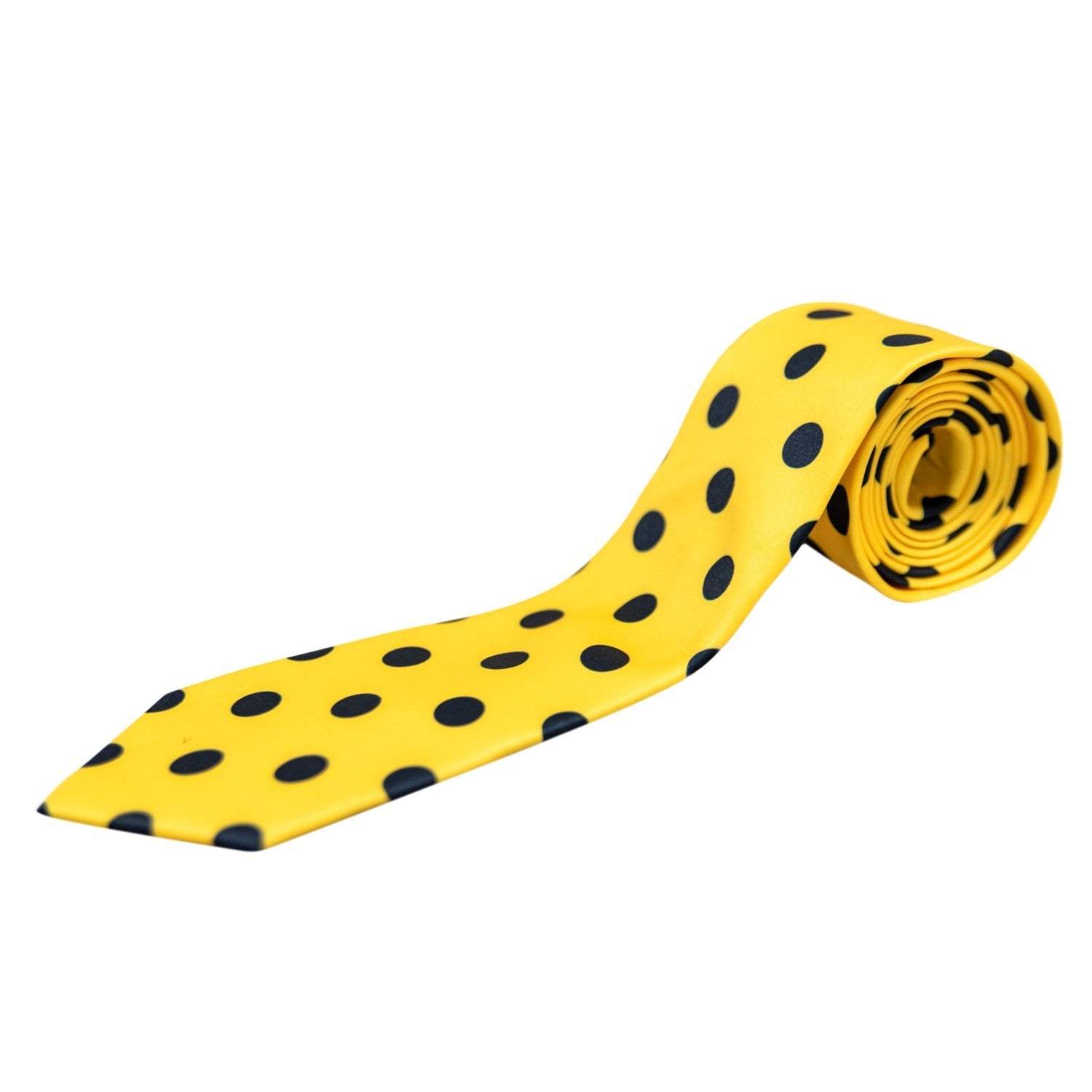 - This fun costume features a bright yellow button up shirt with yellow pants to match. It also comes with a classy and pointy yellow hat and we can't forget about that polka dot tie.