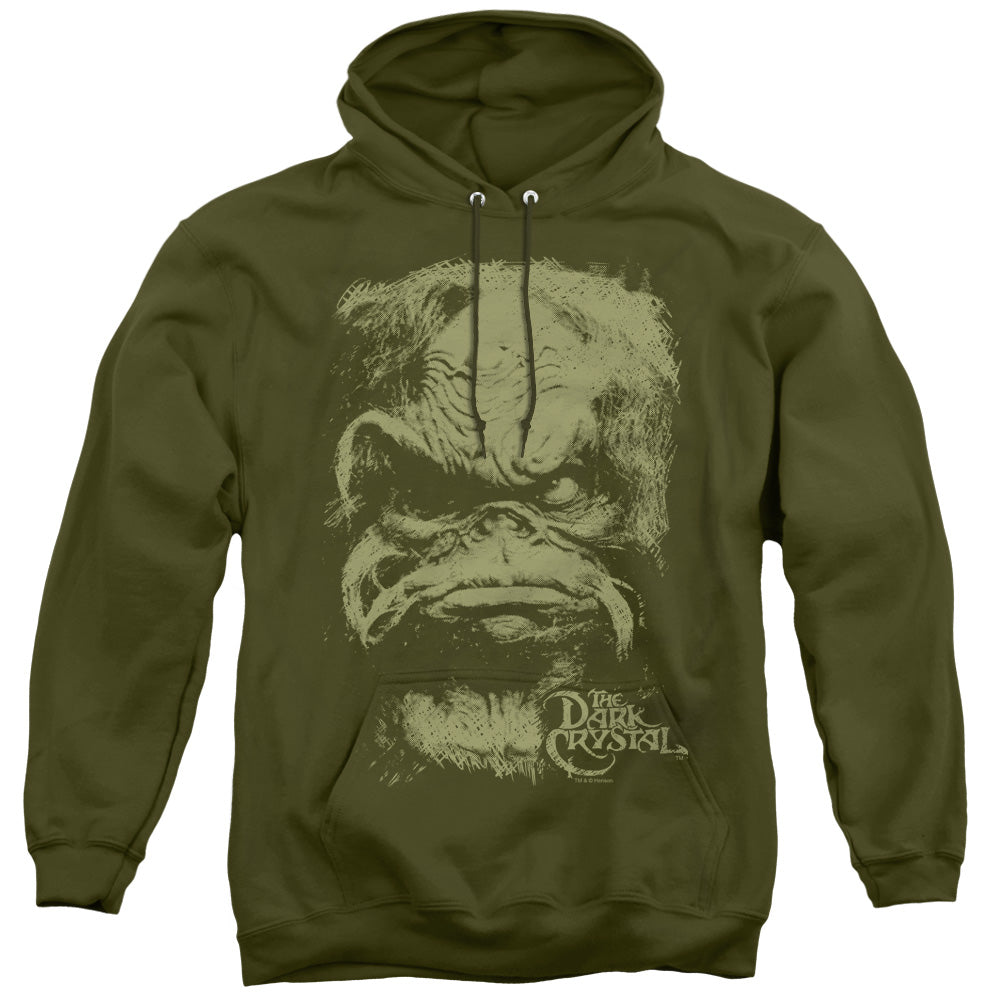 Step into the enchanting universe of Thra with our Dark Crystal Officially Licensed Apparel. Meticulously crafted for die-hard fans and newcomers alike, each piece captures the mystical allure and intricate storytelling of this legendary saga. Adorn yourself with garments featuring richly detailed illustrations and ethereal designs that echo the timeless battle between good and evil. Embrace your destiny in fabrics so luxuriously soft, they feel like a gentle whisper against your skin. Transform your wardrobe and transcend the ordinary with apparel that is not just clothing but a portal to another world. Clad yourself in the legends of Thra and let your inner Gelfling lead you into epic adventures. Secure your piece of magic today and stand apart in a world of mundane attire.Dark Crystal Aughra Mens Hoodie Military Green