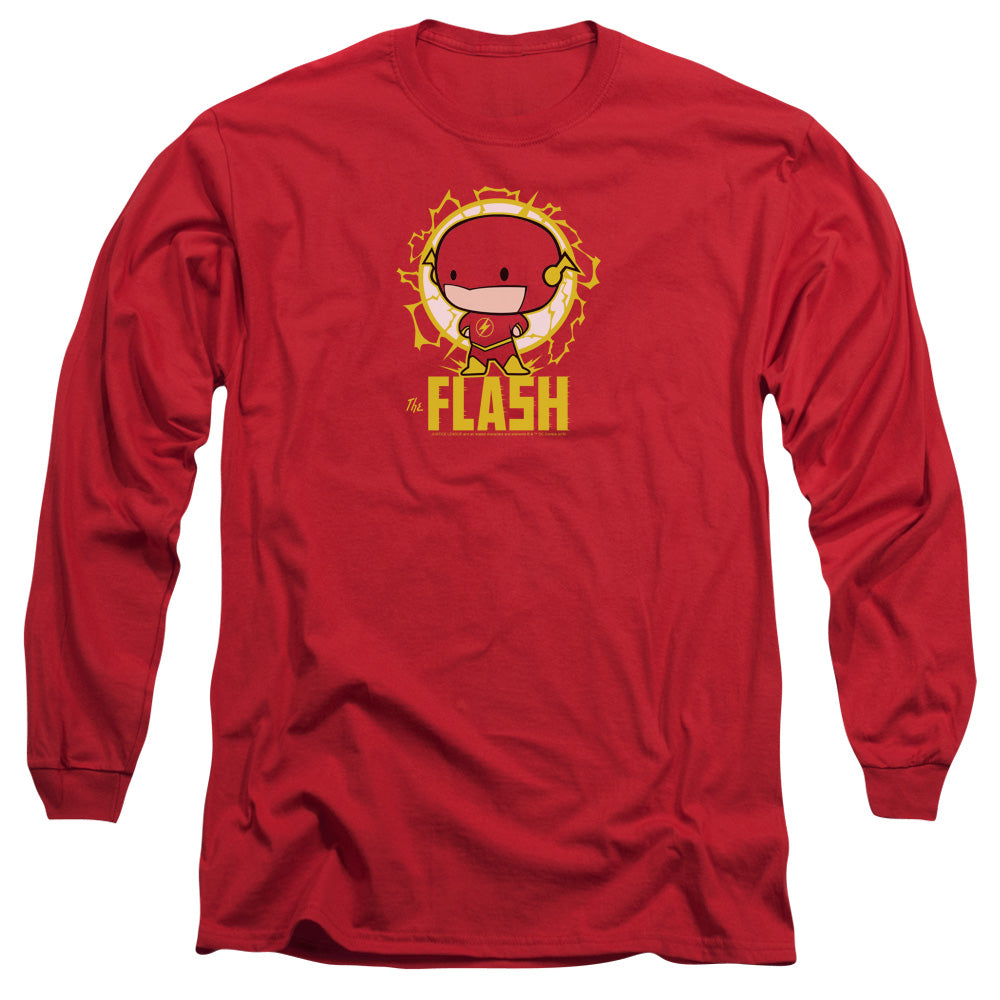 Dc Flash Flash Chibi Mens Long Sleeve Shirt Red Officially Licensed throwback retro movie mens long sleeve tee shirt