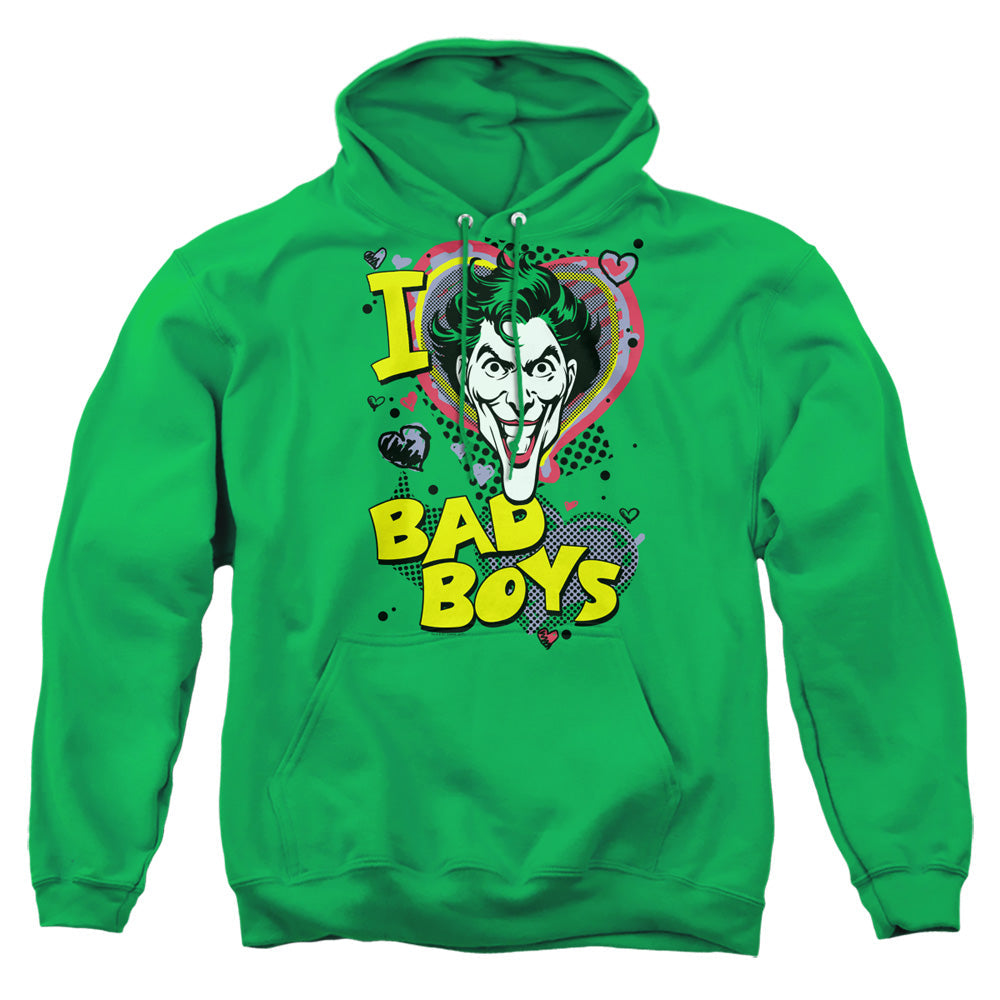 Dive into the depths of style with our officially licensed DC Aquaman Apparel. Crafted for the modern hero, each piece in this collection exudes the commanding essence of Atlantis with uncompromising quality and riveting design. Whether you're ruling the tides or strolling through the city, this attire showcases your allegiance to the ocean's mightiest warrior. Each garment blends comfort with bold aesthetics, incorporating intricate details that reflect Aquaman's legendary insignia. With this apparel, you don't just wear clothing ƒ?? you embody the spirit of the sea. Be the beacon of courage and power; make waves in the fashion world. Secure your piece of the myth, and let your wardrobe reign supreme!Dc I Heart Bad Boys 2 Mens Hoodie Kelly Green