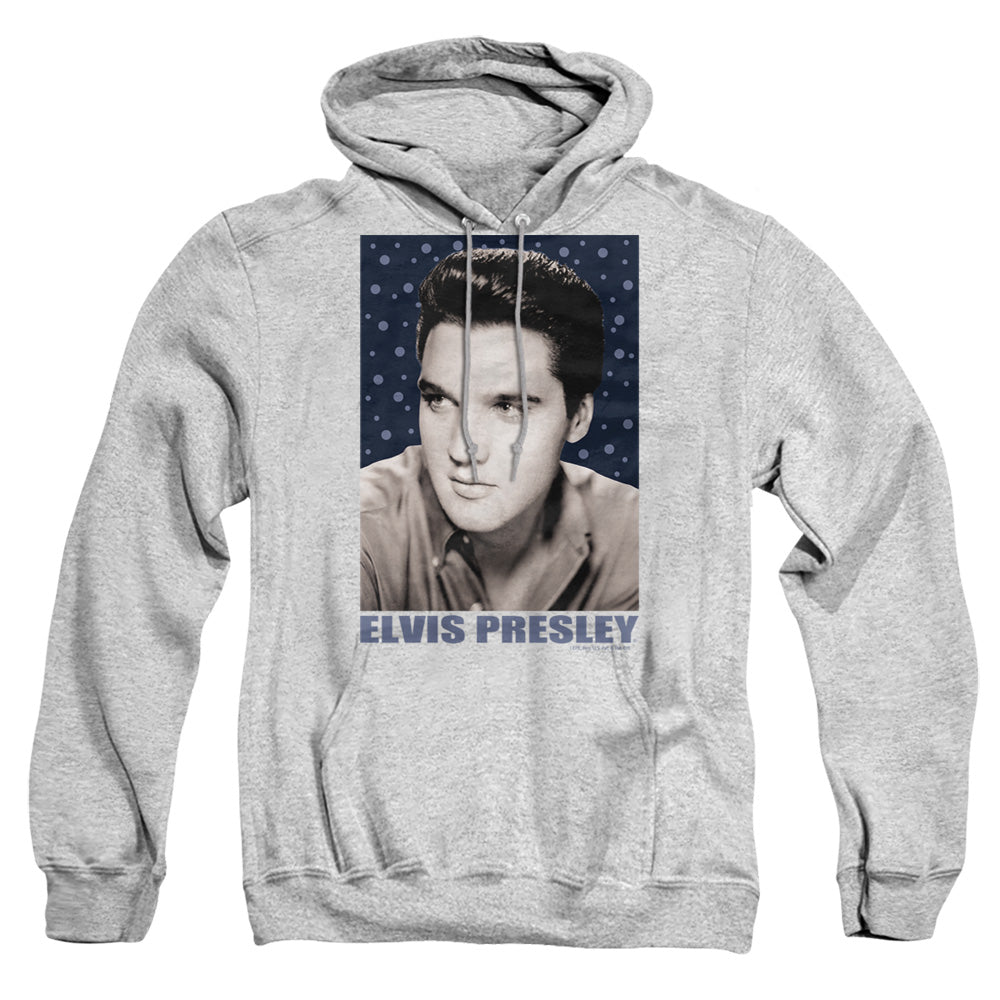 Embrace your inner King with our Elvis Presley Officially Licensed Apparel. Dive into a world of iconic style and unmatched charisma, crafted meticulously for true fans of the Rock 'n' Roll legend. Our exclusive collection features timeless designs and luxury fabrics that capture the spirit of Elvis in every stitch. From classic tees adorned with electrifying rhinestones to plush hoodies that echo his signature swagger, each piece promises a touch of vintage flair and modern comfort. Perfect for those who appreciate timeless elegance and a dash of rebellious flair, our apparel isn't just clothing—it's a tribute. Wear the legend, feel the legacy, and let every day be an encore performance. Perfect for festivals, casual outings, or simply lounging with a hint of rockstar poise, our collection is a must-have for any Elvis aficionado. Step into the spotlight and let our officially licensed apparel be the crown jewel of your wardrobe.Elvis Presley Blue Sparkle Mens Hoodie Athletic Heather