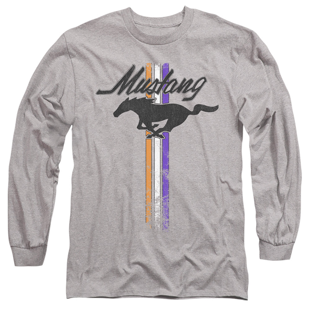 Ford Mustang Mustang Stripes Mens Long Sleeve Shirt Athletic Heather Officially Licensed throwback retro movie mens long sleeve tee shirt