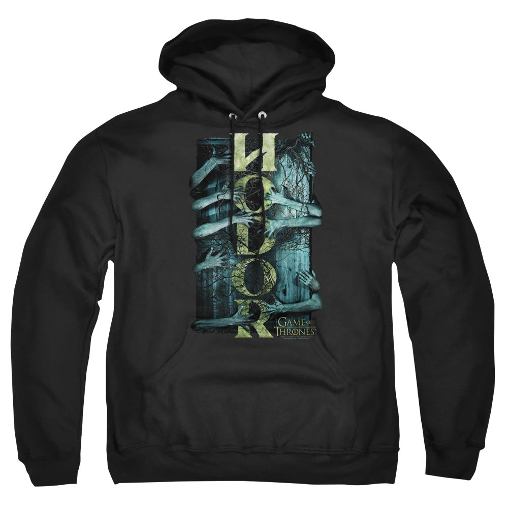 Step into the mythical realm of Westeros with our Game of Thrones Officially Licensed Apparel. Crafted to perfection, each piece in our collection is a tribute to the iconic saga that captivated millions. Immerse yourself in the world of dragons, direwolves, and epic battles, wearing gorgeously detailed designs that pay homage to your favorite houses and characters. From the sigil of House Stark to the fiery banner of House Targaryen, our apparel combines premium fabrics with breathtaking artistry. Elevate your wardrobe and make a statement that reverberates with the power and intrigue of the Seven Kingdoms. Make your allegiance known and embrace the allure of Game of Thrones, where fashion meets fantasy. Limited edition and authentically licensed, each garment resonates with the passion of a true fan. The Iron Throne awaitsƒ??claim your rightful place in style.Game Of Thrones Hodor Mens Hoodie Black