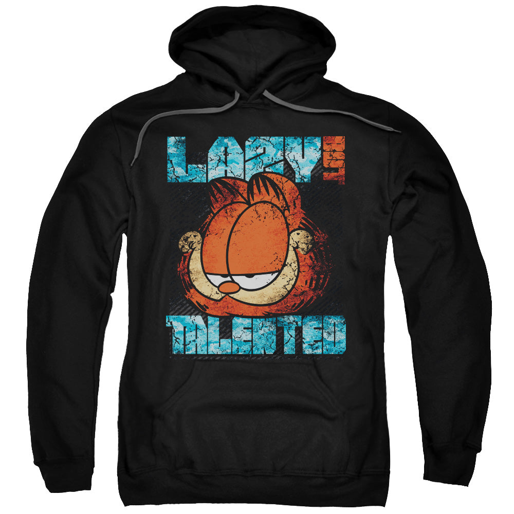 Dive into the world of timeless sarcasm and boundless charm with our officially licensed Garfield apparel. Each piece is crafted with the utmost attention to detail, ensuring not only a perfect fit but also a cat-worthy level of comfort. The vibrant colors and instantly recognizable iconic imagery of everyoneƒ??s favorite lazy feline speak volumes without uttering a single ƒ??I hate Mondaysƒ??. Imagine yourself wrapped in premium fabrics that feel as cozy as Garfieldƒ??s paws on a lasagna. Beyond just clothing, each item is a statement of wit and whimsy, tailor-made for those who appreciate the comedic genius of Jim Davisƒ??s beloved character. Donƒ??t settle for ordinary; choose a staple piece that truly embodies the lazy, witty, and utterly lovable spirit of Garfield. Make it yours today and let your wardrobe reflect your impeccable taste in humor.Garfield Lazy But Talented Distressed Mens Hoodie Black