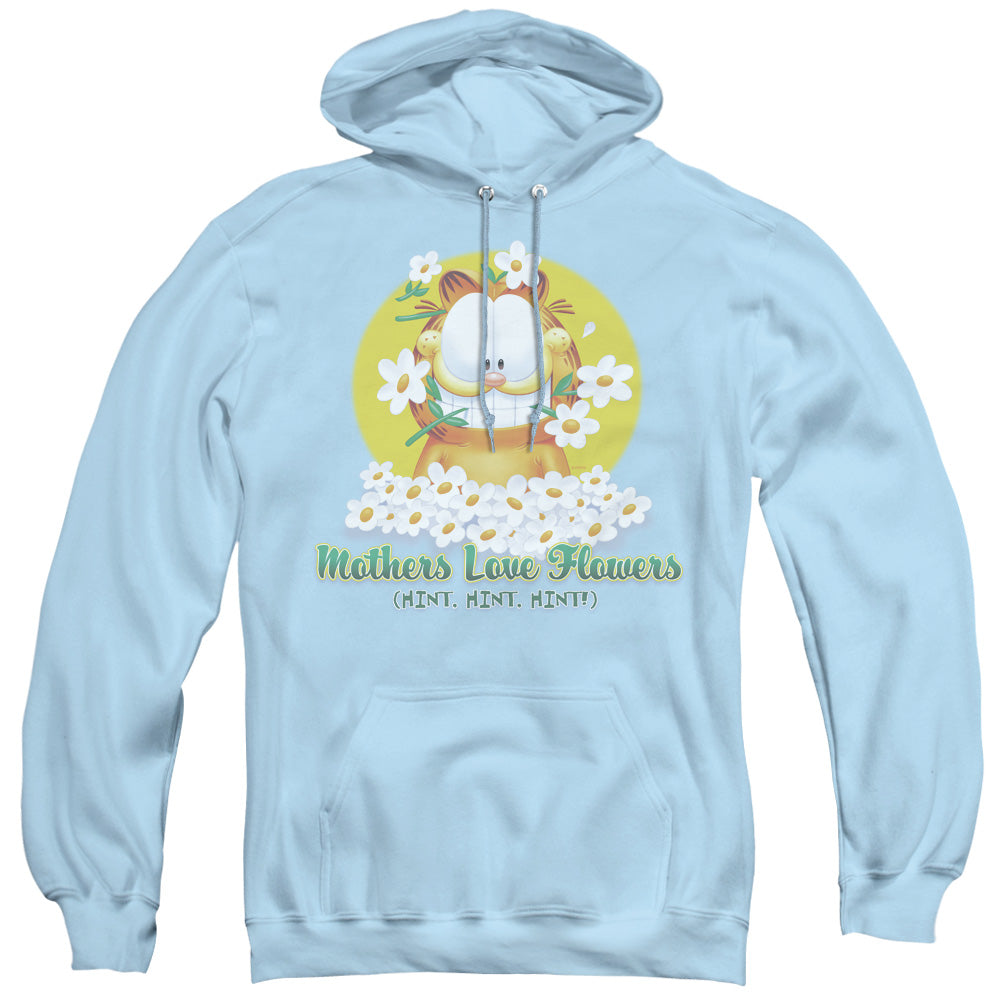 Garfield Mothers Love Flowers Mens Hoodie Light Blue throwback retro movie mens pullover hoodie