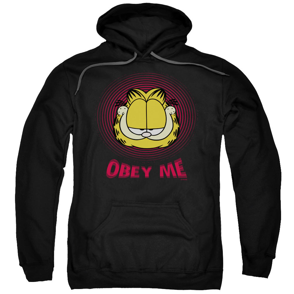 Dive into the world of timeless sarcasm and boundless charm with our officially licensed Garfield apparel. Each piece is crafted with the utmost attention to detail, ensuring not only a perfect fit but also a cat-worthy level of comfort. The vibrant colors and instantly recognizable iconic imagery of everyoneƒ??s favorite lazy feline speak volumes without uttering a single ƒ??I hate Mondaysƒ??. Imagine yourself wrapped in premium fabrics that feel as cozy as Garfieldƒ??s paws on a lasagna. Beyond just clothing, each item is a statement of wit and whimsy, tailor-made for those who appreciate the comedic genius of Jim Davisƒ??s beloved character. Donƒ??t settle for ordinary; choose a staple piece that truly embodies the lazy, witty, and utterly lovable spirit of Garfield. Make it yours today and let your wardrobe reflect your impeccable taste in humor.Garfield Obey Me Mens Hoodie Black