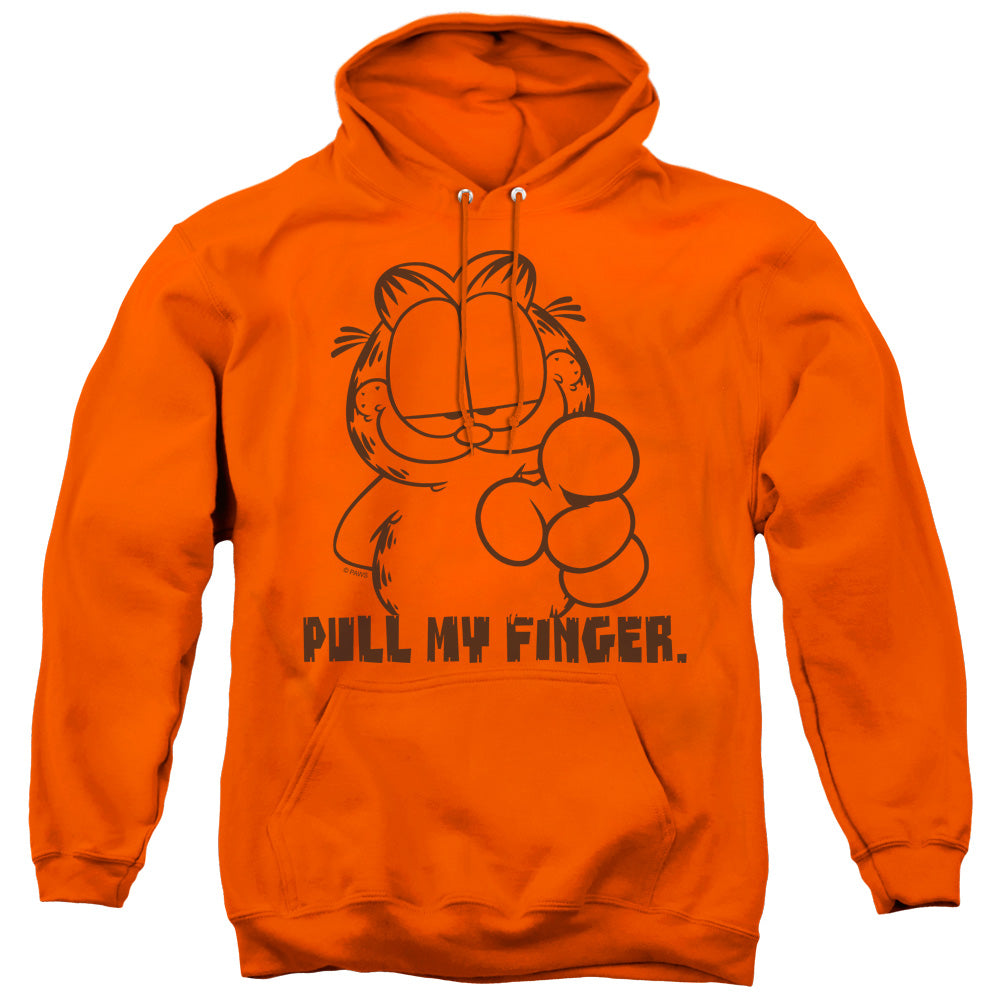 Dive into the world of timeless sarcasm and boundless charm with our officially licensed Garfield apparel. Each piece is crafted with the utmost attention to detail, ensuring not only a perfect fit but also a cat-worthy level of comfort. The vibrant colors and instantly recognizable iconic imagery of everyoneƒ??s favorite lazy feline speak volumes without uttering a single ƒ??I hate Mondaysƒ??. Imagine yourself wrapped in premium fabrics that feel as cozy as Garfieldƒ??s paws on a lasagna. Beyond just clothing, each item is a statement of wit and whimsy, tailor-made for those who appreciate the comedic genius of Jim Davisƒ??s beloved character. Donƒ??t settle for ordinary; choose a staple piece that truly embodies the lazy, witty, and utterly lovable spirit of Garfield. Make it yours today and let your wardrobe reflect your impeccable taste in humor.Garfield Pull My Finger Mens Hoodie Orange