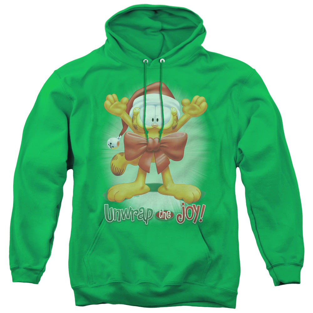 Garfield Unwrap The Joy! Mens Hoodie Kelly Green throwback retro movie mens pullover hoodie