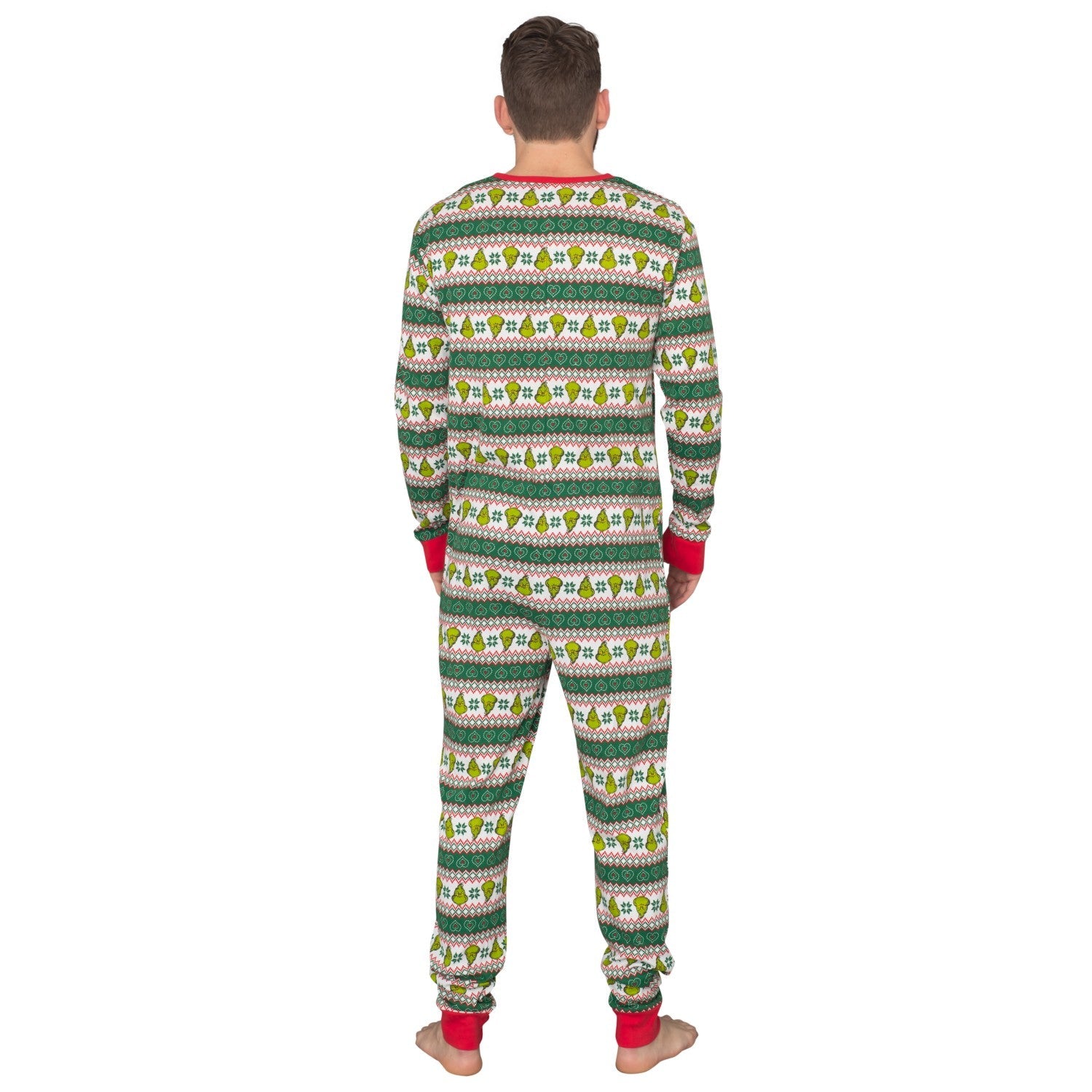 Officially Licensed Grinch Family Faces Christmas Green and White Adult Pajama Union Suit