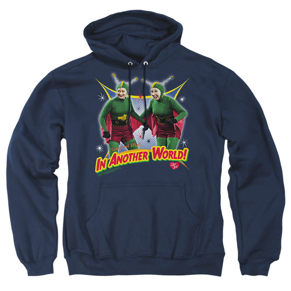I Love Lucy In Another World Mens Hoodie Navy throwback retro movie mens pullover hoodie