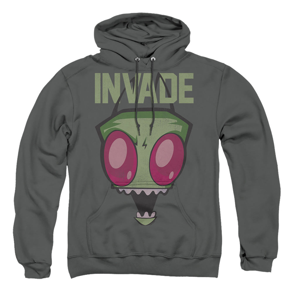 Invader Zim Invade Mens Hoodie Charcoal throwback retro movie mens pullover hoodie