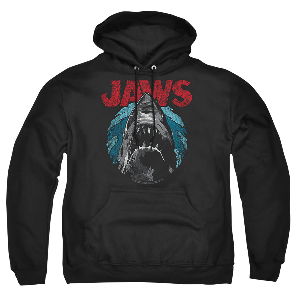 Immerse yourself in cinematic history with our Jaws Officially Licensed Apparel. Expertly crafted for fans of the iconic thriller, this exclusive collection transcends mere clothing, enveloping you in the legendary excitement of Amity Island's most infamous summer. Each piece, adorned with iconic imagery and authentic designs, ensures you proudly wear a badge of pop culture excellence. The premium fabric promises unparalleled comfort and durability, making it the ideal choice for movie marathons or casual outings. Dare to stand out and showcase your classic film enthusiasm with apparel that speaks volumes—dive into timeless style with Jaws and let the great white come alive in your wardrobe.Jaws Water Circle Mens Hoodie Black