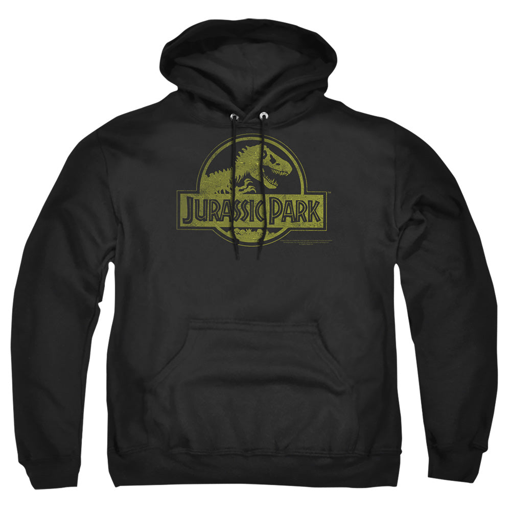 Step into a world where ancient legends meet modern style with our Jurassic Park Officially Licensed Apparel. Every piece in this collection is a carefully crafted tribute to the iconic film that redefined cinematic adventure. Adorn yourself with garments that roar with the vibrant energy of prehistoric giants, featuring designs that capture the heart-stopping thrill of the untamed. Tailored with meticulous attention to detail and made from premium materials, our apparel not only promises comfort but also ensures durability for any expedition—urban or wild. Declare your status as a true fan and let your wardrobe echo the legacy of Jurassic Park. Elevate your style and ignite your imagination; this is more than clothing—it's a call to adventure. Secure your piece of history now and make every day legendary.Jurassic Park Distressed Logo Mens Hoodie Black