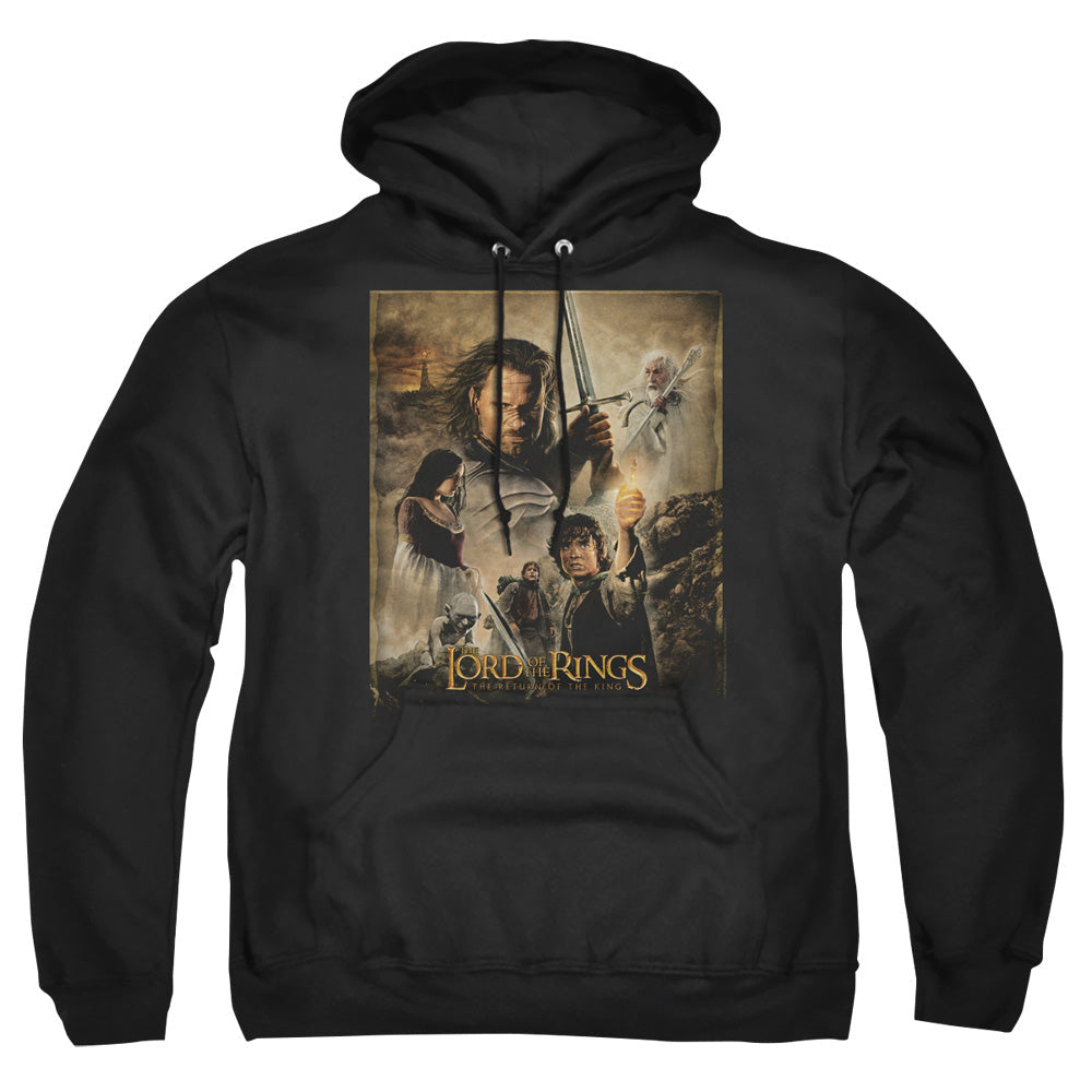 Step into the enchanting world of Middle-earth with our Lord Of The Rings Officially Licensed Apparel, meticulously crafted for true fans and epic adventurers. Each piece in this exclusive collection is more than just clothing; it's a tapestry of storytelling, woven with the magic of J.R.R. Tolkien's unparalleled universe. With designs that pay homage to the timeless tales of heroism and friendship, our apparel captures the essence of Middle-earth with authenticity and flair. Whether you're gearing up to journey through the Shire or face the peaks of Mount Doom, our garments ensure you do so in legendary style. Embrace your inner hobbit, elf, or wizard, and elevate your wardrobe with pieces as iconic as the One Ring itself. Venture boldly into your next adventureƒ??wear the legend!Lord Of The Rings Rotk Poster Mens Hoodie Black